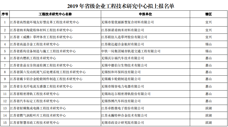 根據(jù)《關(guān)于做好2019年省級企業(yè)工程技術(shù)研究中心及省級企業(yè)院士工作站建設(shè)工作的通知》(蘇科研函〔2019〕264號)和《關(guān)于下放省級工程技術(shù)研究中心和省級企業(yè)人才站點(diǎn)管理權(quán)限的通知》(蘇科條發(fā)〔2015〕136號)的要求,受省科技廳委托,科技局對申報2019年省級企業(yè)工程技術(shù)研究中心的項目進(jìn)行了評審?,F(xiàn)將擬上報結(jié)果進(jìn)行公示,公示時間5個工作日(自2019年8月26日至8月30日)。 任何單位和個人如對公示項目有異議,可在公示期內(nèi)以書面形式提出,并列舉異議理由和相關(guān)證明材料。以單位名義提出的,需加蓋單位公章;以個人名義提出的,需寫明自己的真實姓名、單位、職務(wù)職稱、聯(lián)系地址及電話等。 監(jiān)督電話:81821912 咨詢電話:81821907?![]()